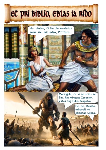 Ho, diable, ĉi tiu ulo kondutas same kiel mia edzo, Potifaro. Malsaĝulo, ĉu vi ne scias ke ĉiu, kiu minacas Israelon, estas tuj fulm-frapata? He, ne, Davido, ankoraŭ ne ekzistas Usono.