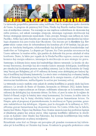 itaj al konfliktoj kaj klimataj katastrofoj. La streĉo inter evoluintaj kaj evoluantaj landoj,