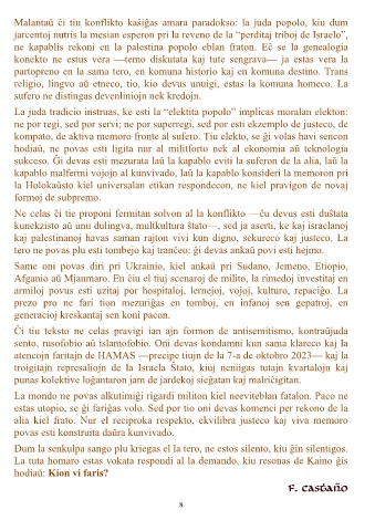 kaj palestinanoj havas saman rajton vivi kun digno, sekureco kaj justeco. La